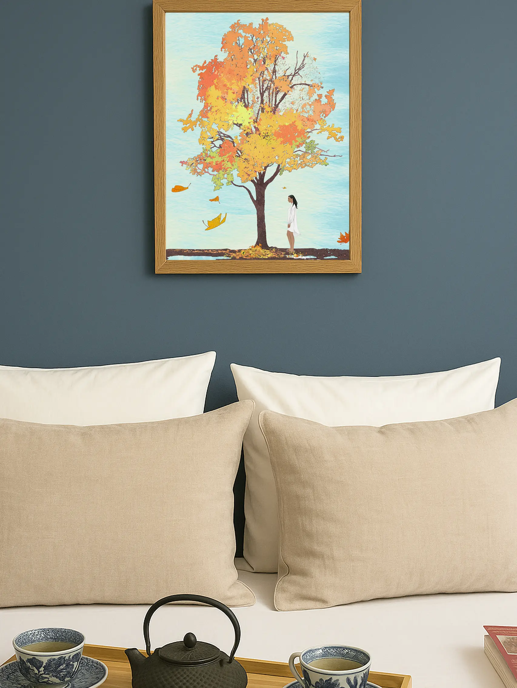 Imprimée sur papier de qualité musée, chaque impression est signée et numérotée par l’artiste, offrant une valeur de collection pour tout amateur d’art. Ainsi, cette œuvre en édition limitée est parfaite pour les intérieurs modernes, les espaces de vie chaleureux ou comme cadeau de saison attentionné. Que ce soit dans votre salon, votre chambre ou votre bureau, L’Automne est Là apporte une présence réconfortante et inspirante, célébrant la beauté douce de la nature et les instants calmes de la vie.